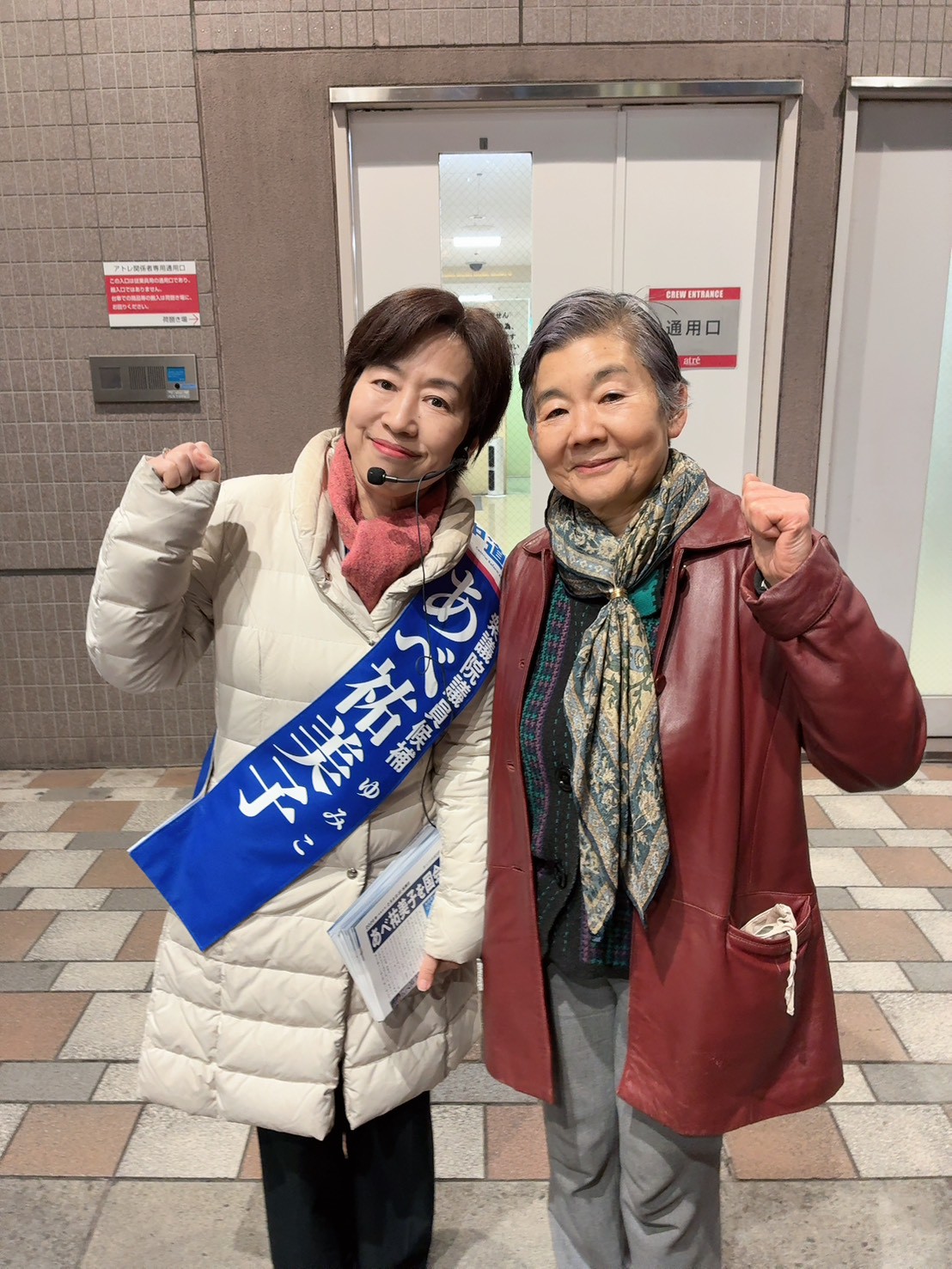 「東京3区品川は、あべ祐美子さんに!」と、3日は大井町駅、5日は西大井駅での街宣に吉田ゆみこが応援に駆けつけました。