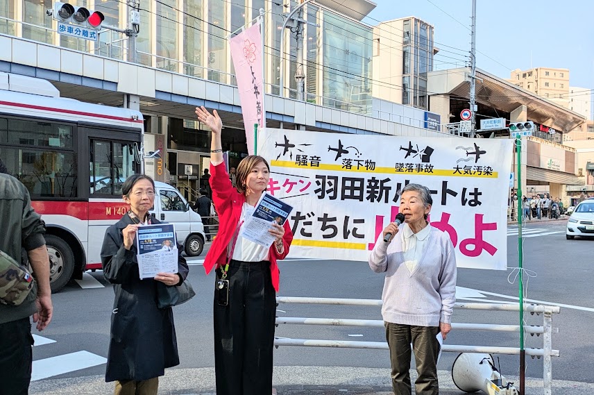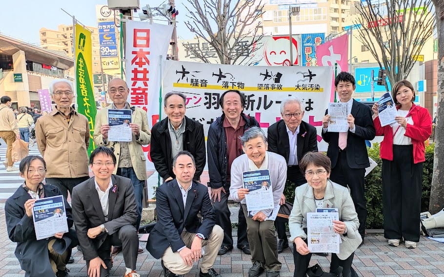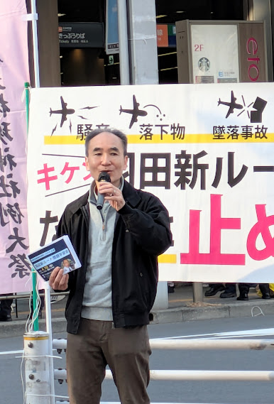 羽田新飛行ルート白紙撤回を求める超党派議員の街宣が行われました