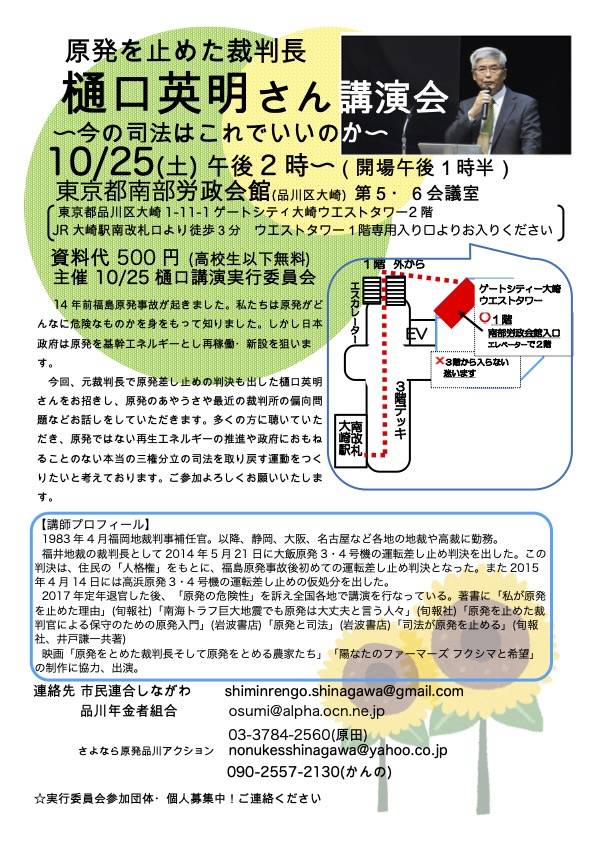 ご案内 ~原発を止めた裁判長 樋口英明さんの講演会~
